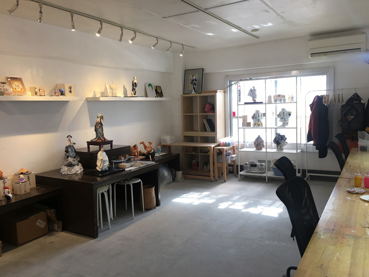 オシャレ雑貨店のような工房で、美しい博多人形を愛でる