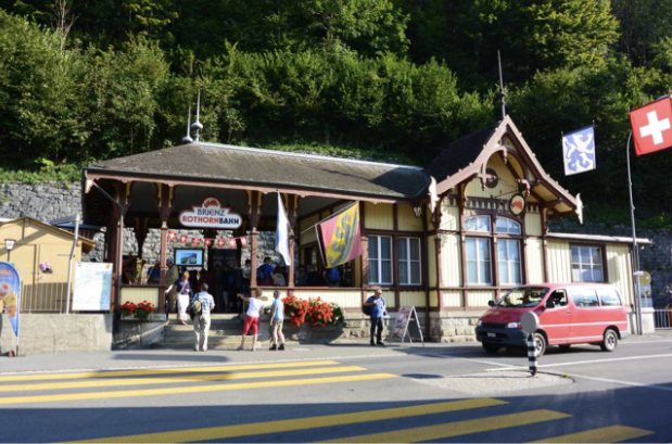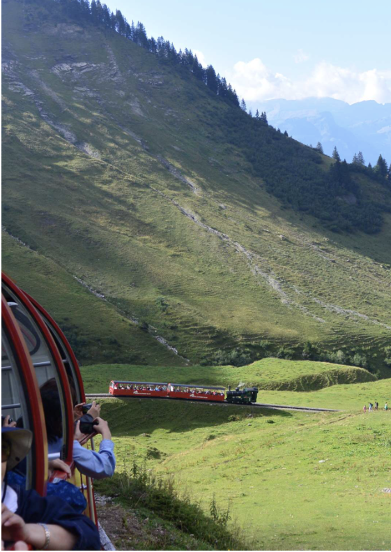 ちなみに、終着駅には大井川鐵道との有効の証となる石碑が。遠く離れた日本のローカル線との友好関係を間近にみて思わず胸がジンとします。その他にもレストランやホテル、ギフトショップなどが軒を連ねているため賑わいが!少し足を伸ばして2298mの山頂まで行けば、アイガーにユングフラウ、トルコブルーのブリエンツ湖にインターラーケンの街並みなどが一望できます。是非!あなたも高山植物や乳牛を横目にSLに揺られ、ロートホルンの突き抜けるような大空を独り占めしてみては!?