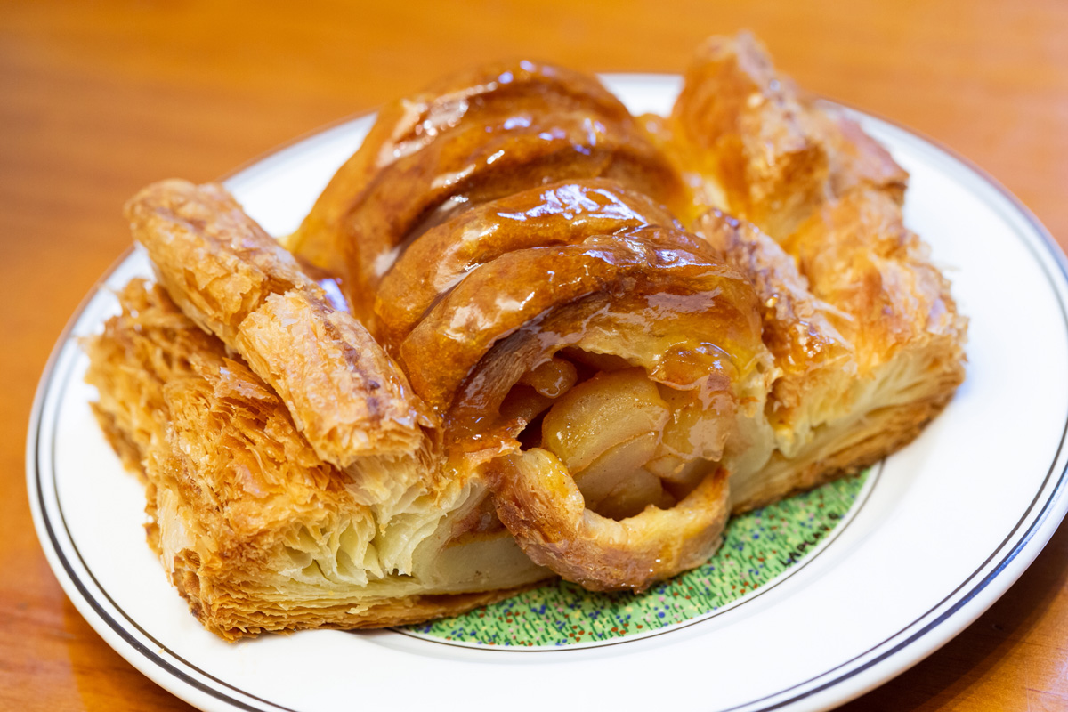「アップルパイ」も最高のおいしさ。丁寧に織り込まれたサックサクの生地の中には、しっとりと煮込まれた紅玉が入っていて、頬張る度に幸福な気分に。>