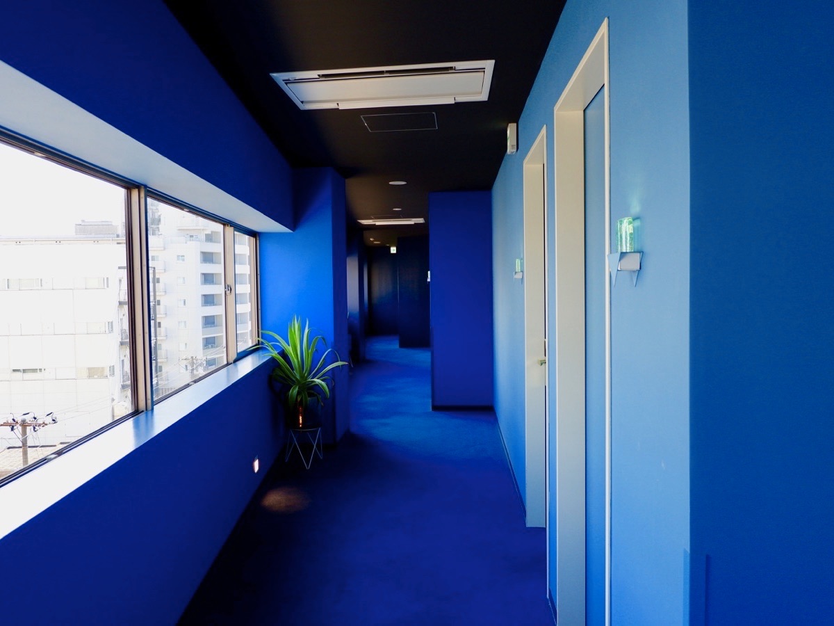 客室フロアの廊下では、奥に行くと次第に濃くなる青のグラデーションに注目。川の中に潜り込んでしまったかのような不思議な気分になります!