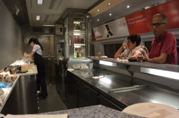 車内はビデオやオーディオシステムも完備され、まるで飛行機の機内サービスのようなクオリティのおもてなしを楽しめます。食堂車は、路線の特徴か、ビジネスマンの利用も多く凛とした空気が。携帯片手に働くスペインの企業戦士とビジネスの話で盛り上がるかも!?このまま一気に、バルセロナ・サンツ駅を目指します。