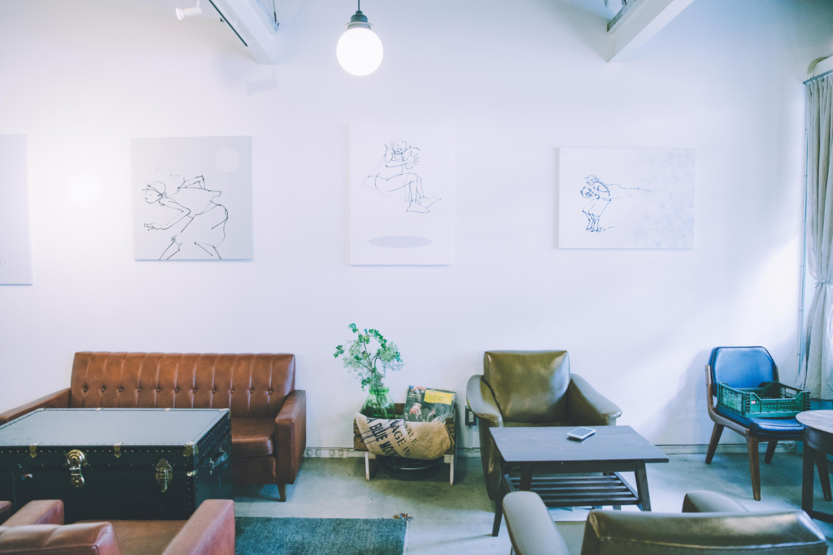 時期によってアーティストとコラボした展示をされているのだそう。この日は真っ白な壁にいくつかのアート作品が展示されていました。