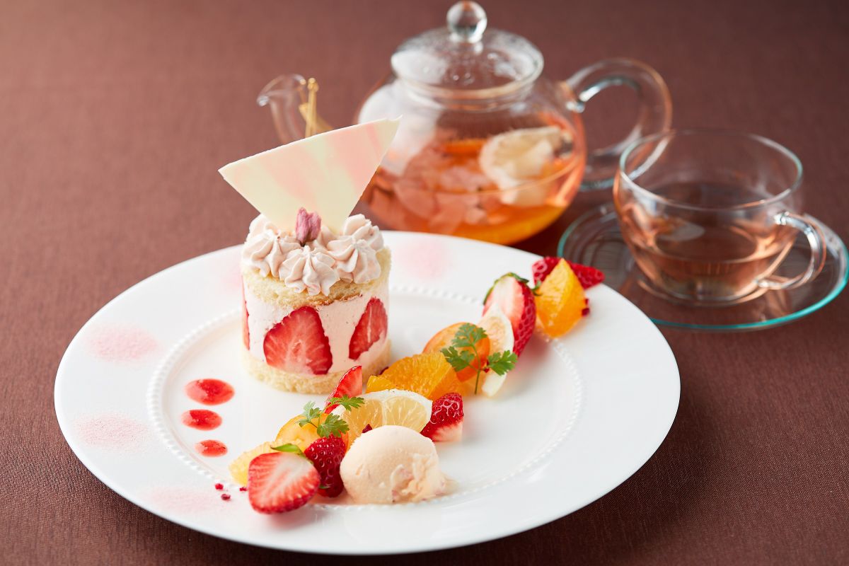 日本橋三井タワー2階の『千疋屋フルーツパーラー』では、1日20食限定「苺と旬の果実の桜プレート」2700円が柑橘と桜のハーブティー付で登場。