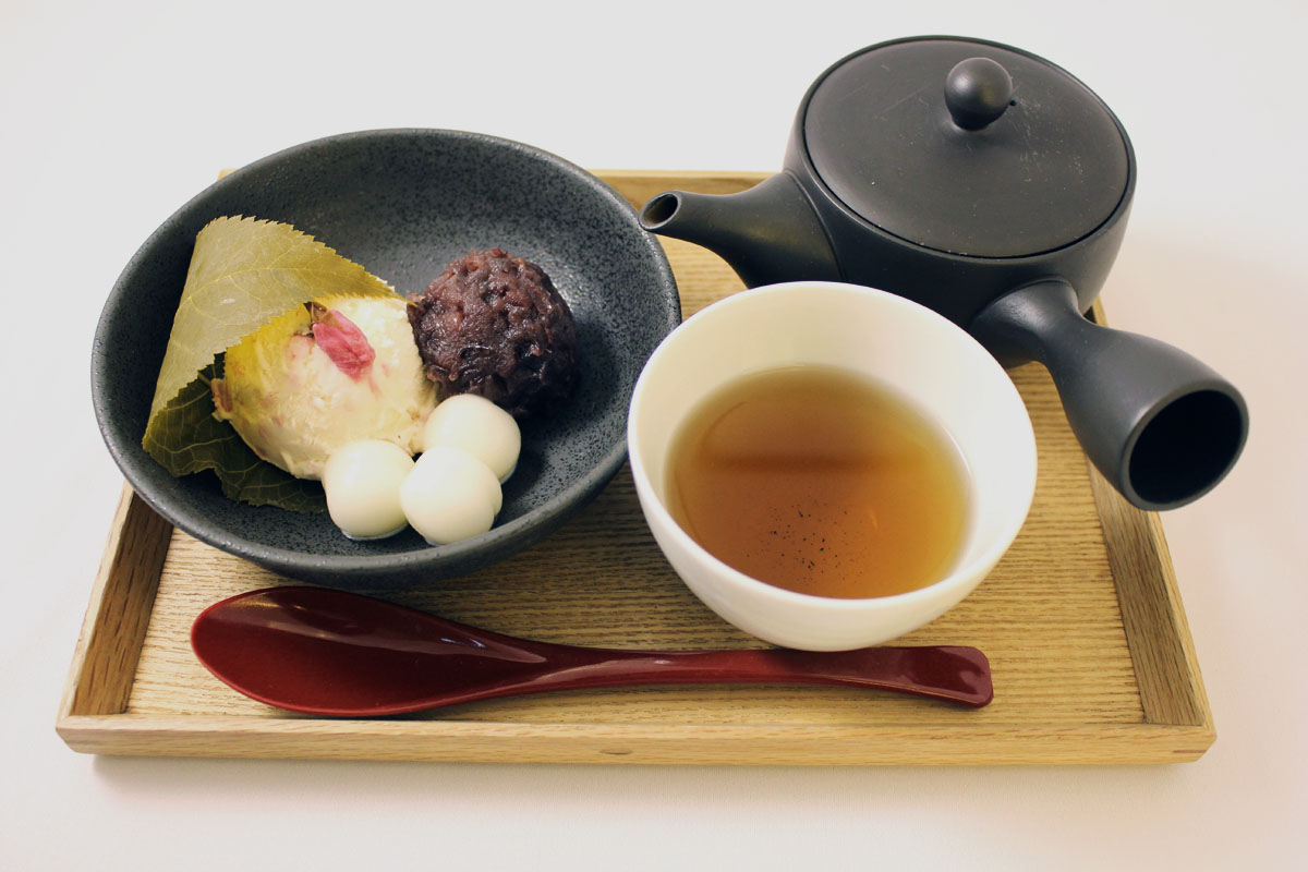 コレド室町1地下1階にある日本橋案内所の『IPPIN CAFE』では、「さくらアイスクリーム」734円が味わえます。ドリンクは、アイスグリーンティー・極上ほうじ茶・煎茶の中から選べます。