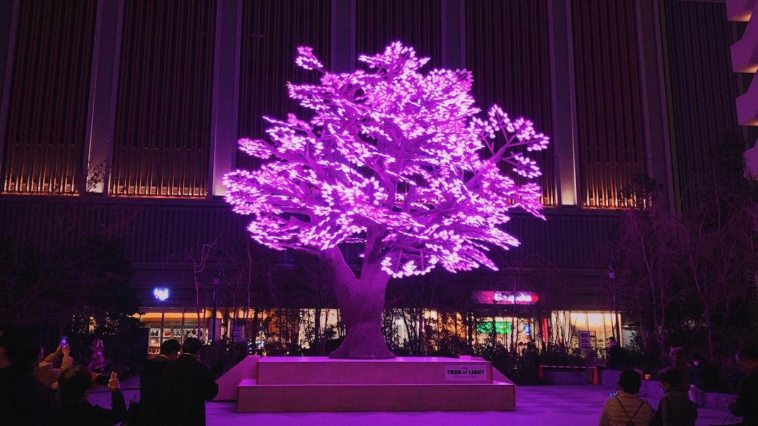 現在開催中の「日本橋 桜フェスティバル」の今年の目玉は、日本橋『福徳の森』に設置された「The Tree of Light‐灯桜(ともしざくら)‐」。約10万個のLEDが1枚1枚の葉に搭載された高さ8mのデジタルアート作品です。12~22時の間は風、音に反応したライティング演出が展開され、インタラクティブでフォトジェニックな幻想的空間を作り出します。