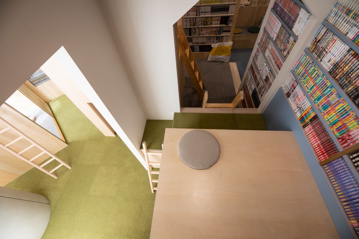 約2万5000冊の漫画が並ぶ、巨大本棚の上で漫画を読んだり、まるで洞窟のような隠れスポットに潜り込んだり、童心に帰りながら居心地の良い場所を宝探し感覚で探すことができます。