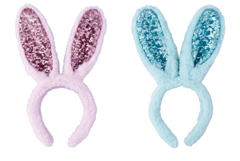 定番のうさみみカチューシャ各1300円は耳の部分がキラキラのスパンコールつき!耳も自由に折り曲げられます!