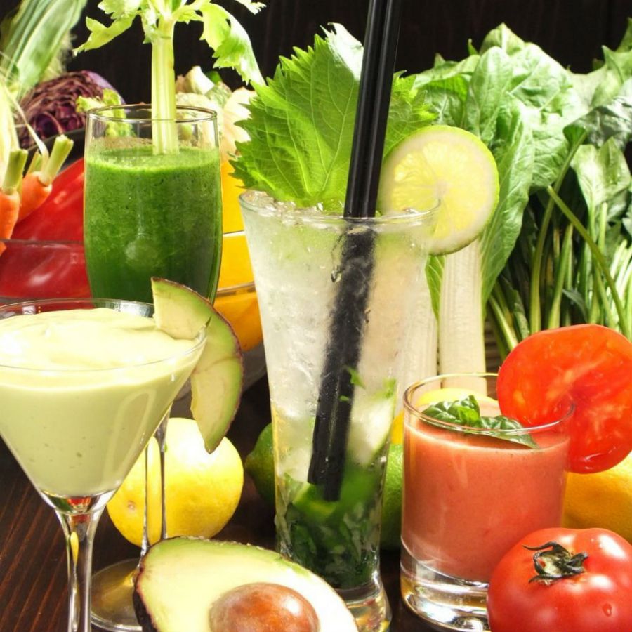 世界的にブームを呼んでいる「ミクソロジーカクテル」は、まだ神戸で提供している店は少ないそう。野菜やフルーツのフレッシュなおいしさを堪能できる、見た目も華やかなカクテルは全10種。美容にも良いトマトやアボカドを使ったものも。ご紹介したコースでは、ミニサイズの「ミクソロジーカクテル」が付いています(飲み放題には含まれていません)。