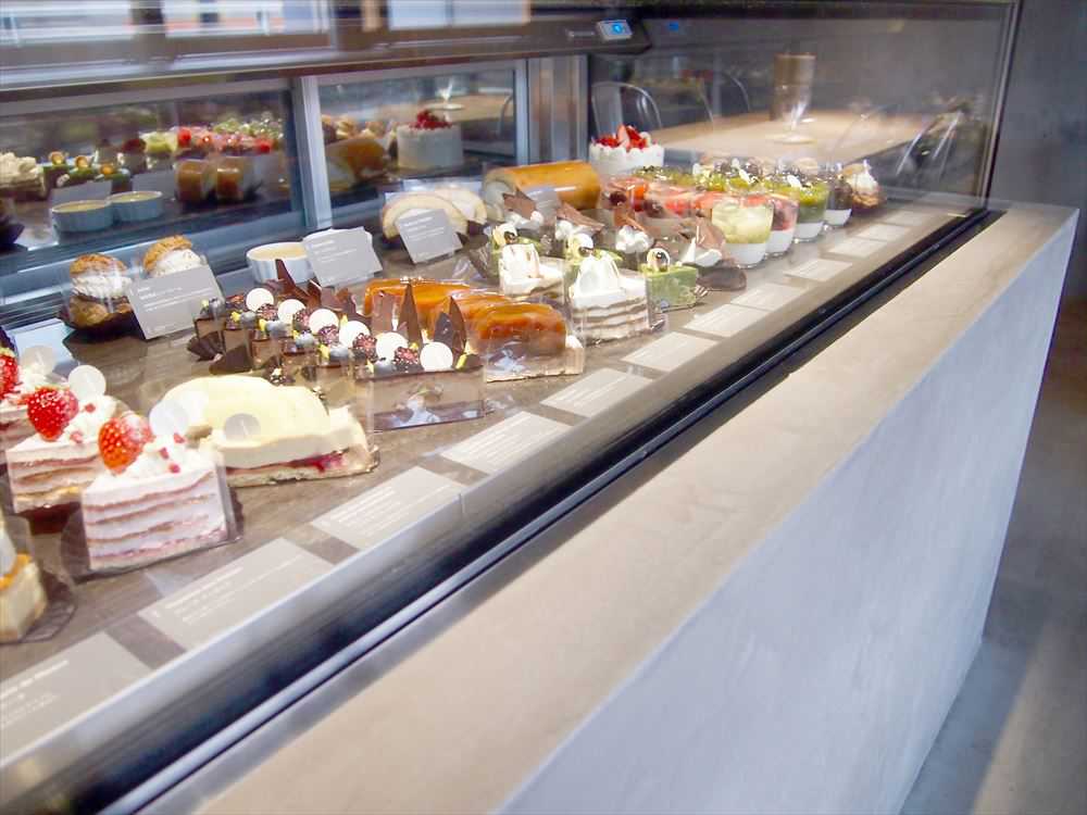 イートインでしか食べられないパフェの他にも、テイクアウトできるスイーツも充実。店内中央の大きなショーケースには、フルーツをふんだんに使った色とりどりのケーキや焼き菓子、さらにゼリーなどのグラスデザートがズラリ!