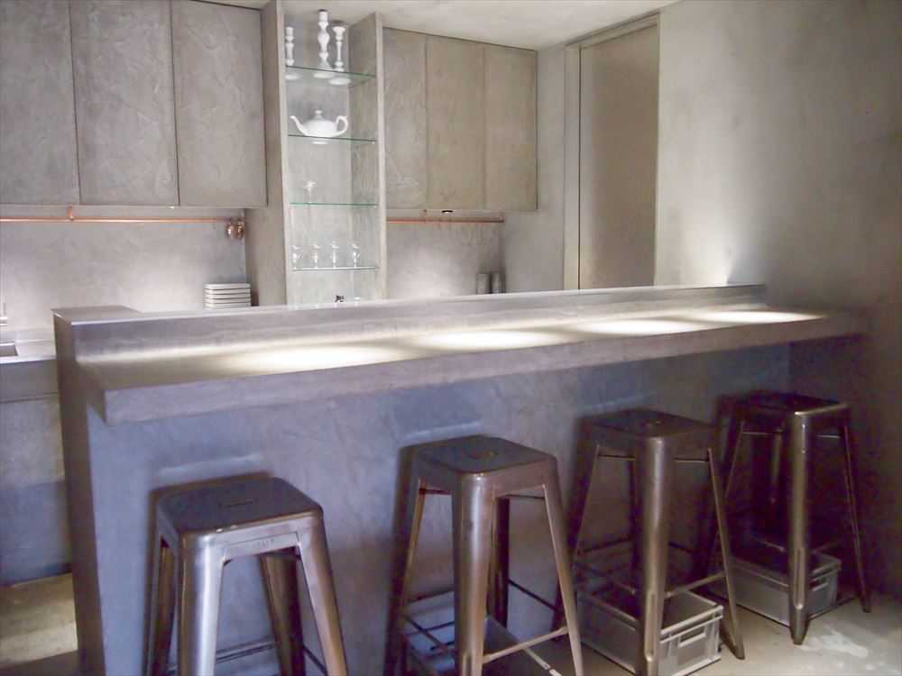 カウンター周りもとってもかわいい!マスタード色のタイルやオリーブ色のサイズ違いの照明、そして奥の棚に飾られたさまざまなディスプレイからも、センスのよさが伝わってきます。ぼーっと眺めながら過ごすだけでも心がほっとする、そんな至福の時を過ごせますよ。