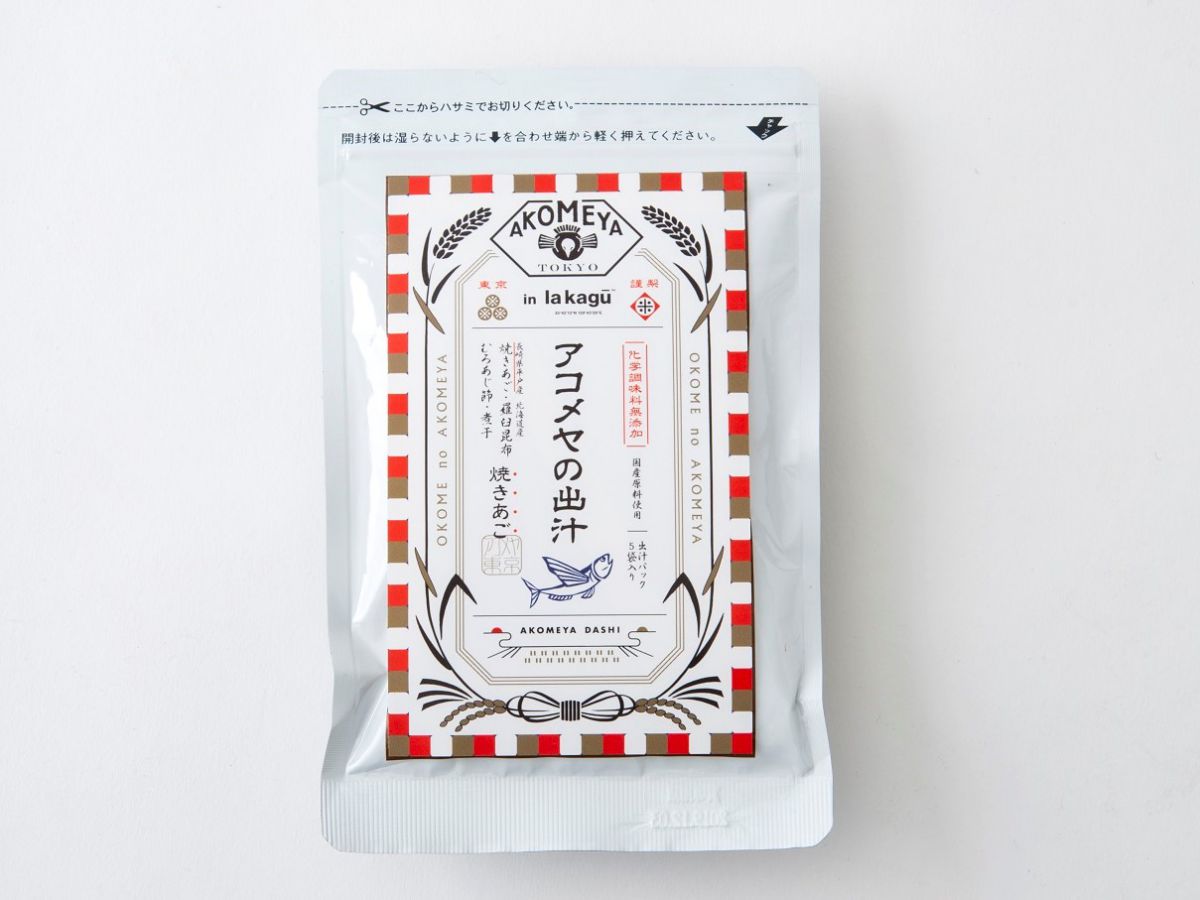 上質な味わいとうまみが料理の味わいをさらに高める「アコメヤの出汁 焼きあご(8g×5袋)」 480円は、希少性の高い平戸産のあごを鮮度がよいまま使用。あご本来の風味が、食卓でも楽しめます。