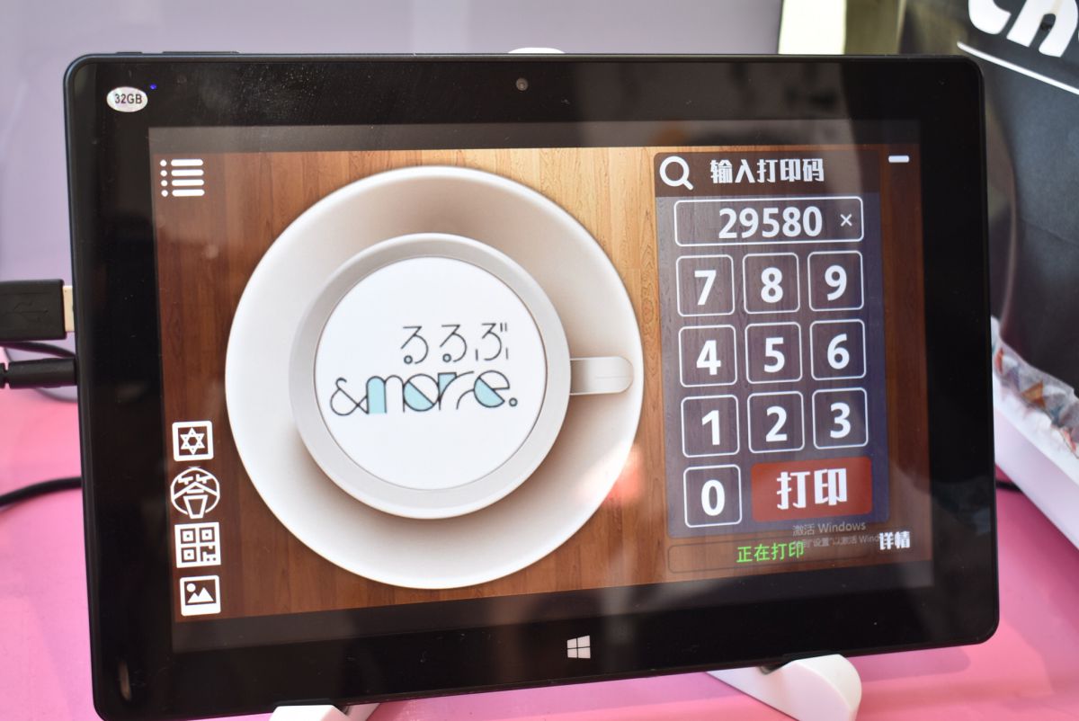 機械の画面に、画像送信時に表示された番号を入力するとドリンクの表面に画像がプリントされます。
