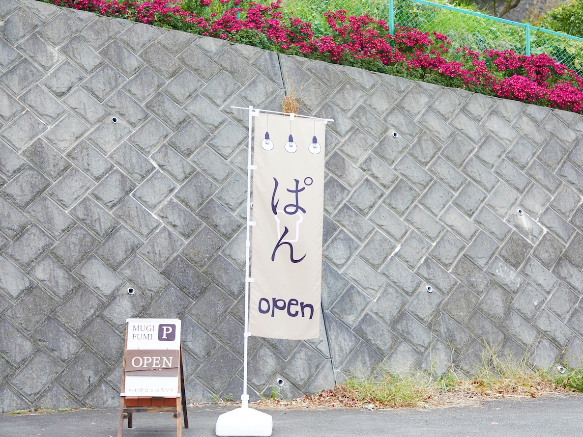 「麦焼処 麦踏」があるのは、JR東海道本線根府川駅から30分ほど山道を進んだところ。駐車場に立つ“ぱんOPEN”ののぼりが目印です。土地柄、来店者の多くは自家用車で訪れるそうですが、小田原の特産物であるみかん畑を眺めながら、のんびりとおさんぽ気分で向かうのもいいですよ。