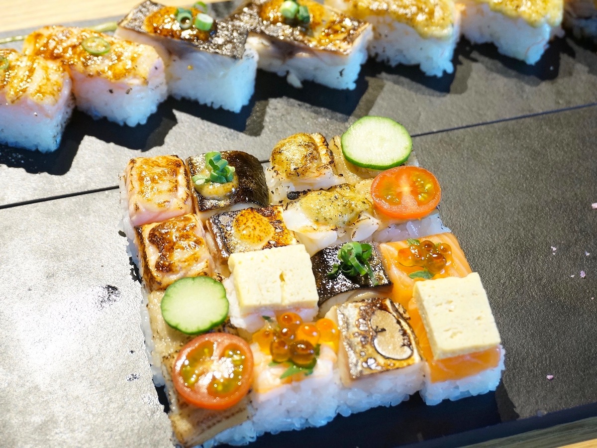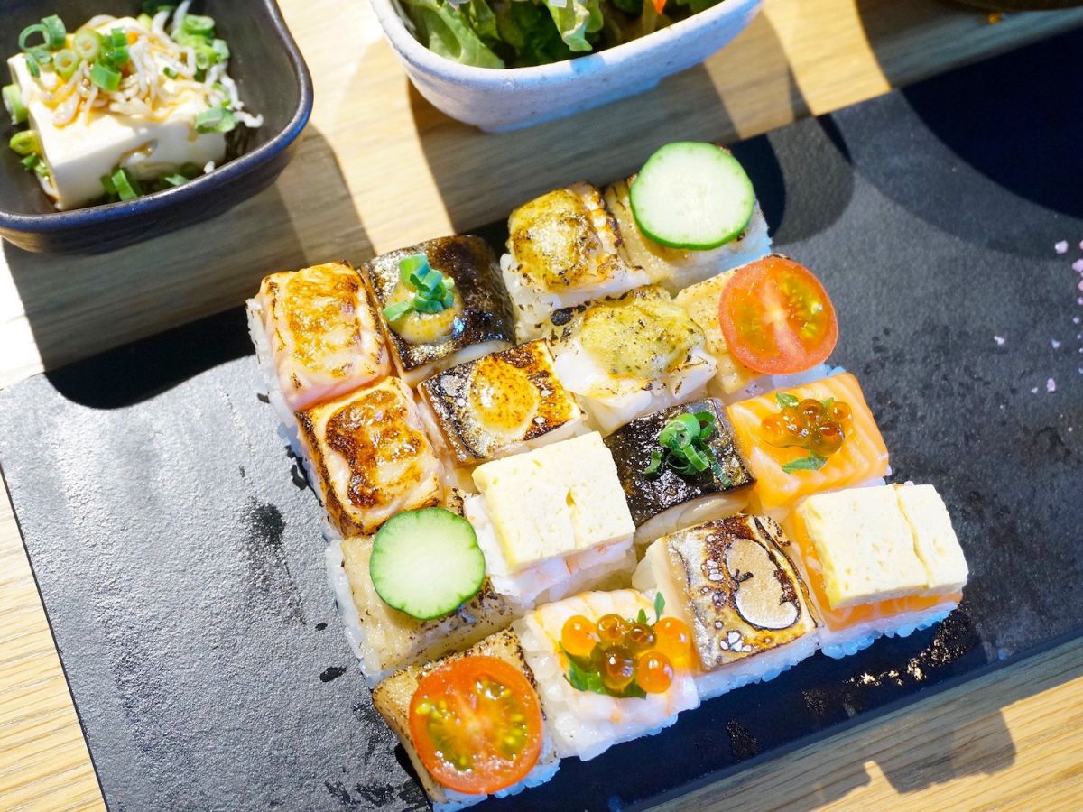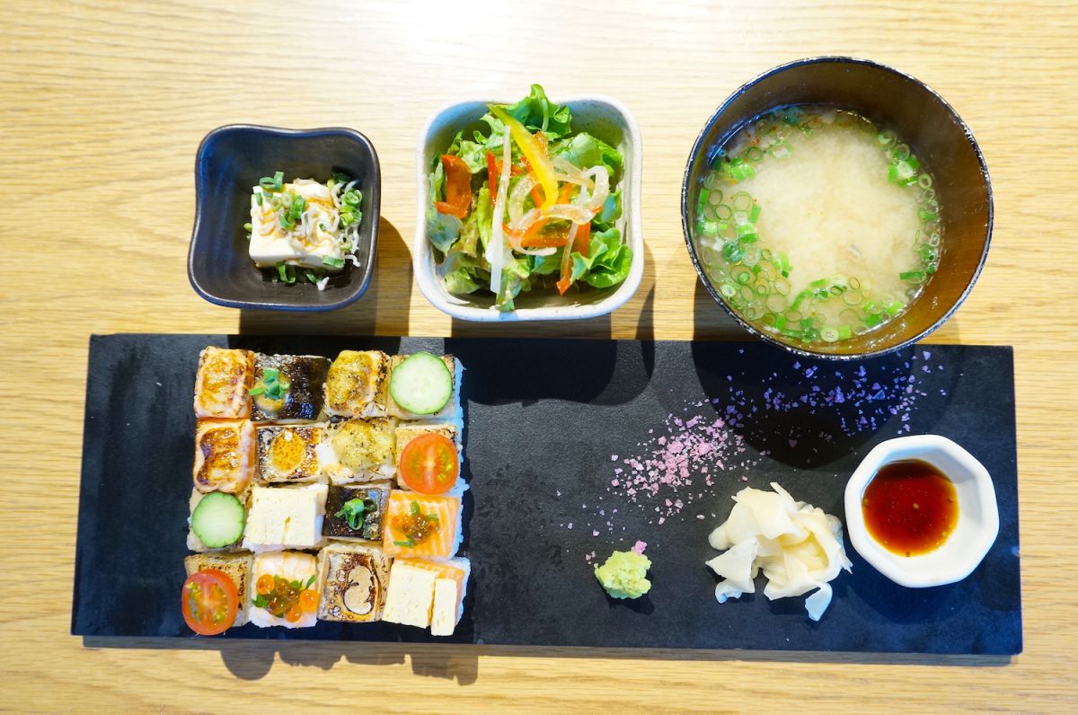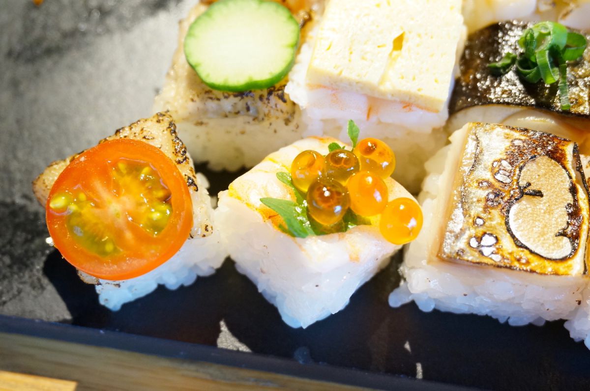 カナダから“逆輸入”のお店ということもあって、新鮮な食材を使用したモダンでおしゃれなお寿司ランチがとても人気。特におすすめなのは、土日祝限定の「モザイク押し寿司」(税抜1490円)。ブロック状のお寿司が美しく並んだアート作品のような押し寿司です。