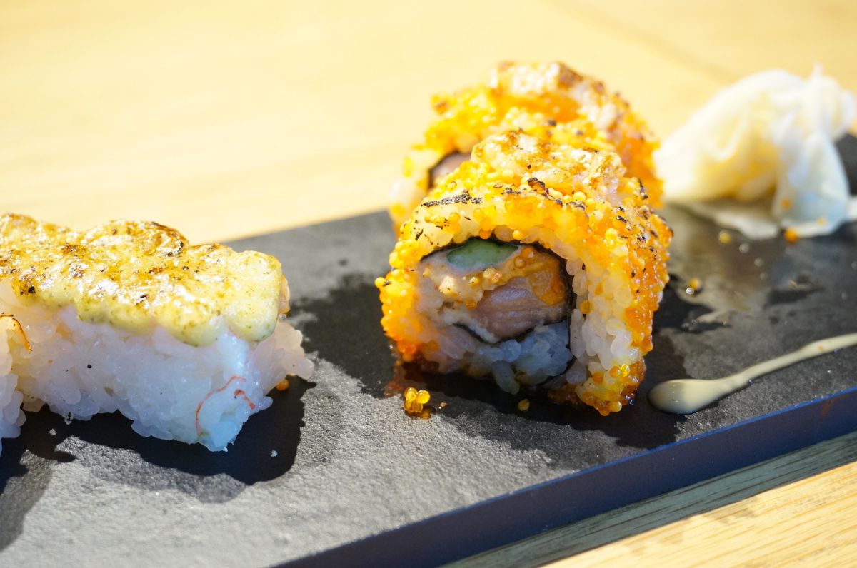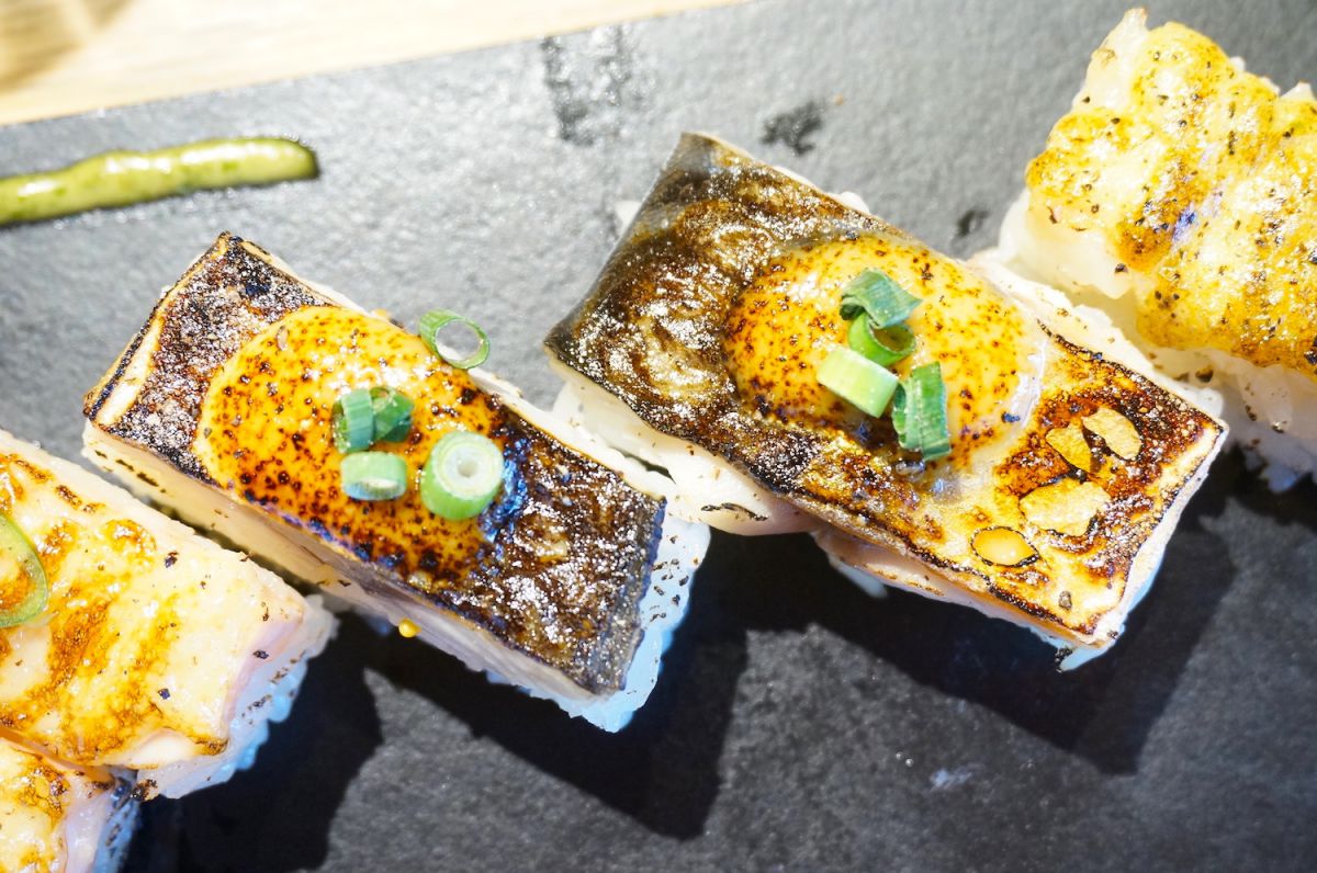 脂が乗ったサーモンやサバは炙ることによって旨味や甘みが増し、香ばしさがさらに食欲をそそります。口のなかで一瞬にして広がるおいしさに感動するばかり!