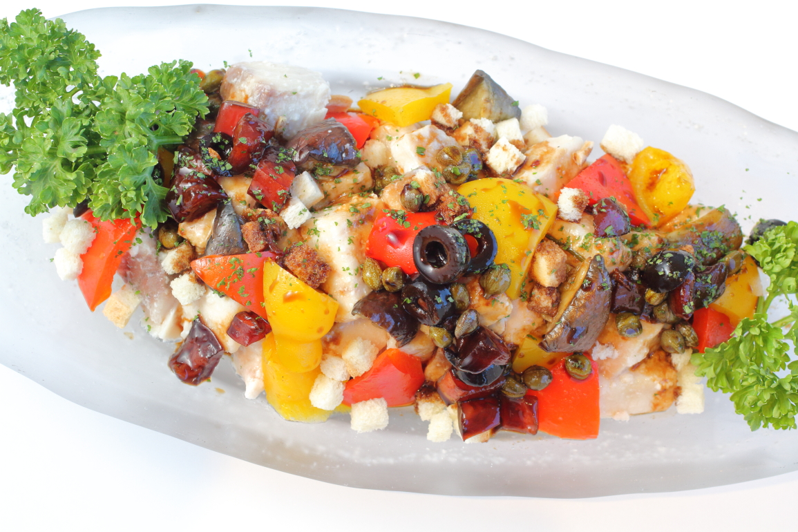 こちらも爽やかな口当たりの「メカジキのコンフィ ハーブ風味」。低温の油で火を通したメカジキは、プリっとした食感でとってもジューシー!バルサミコ酢と塩のドレッシングがさっぱりしていて、たっぷりの野菜が味わえるのもうれしいですよね。
