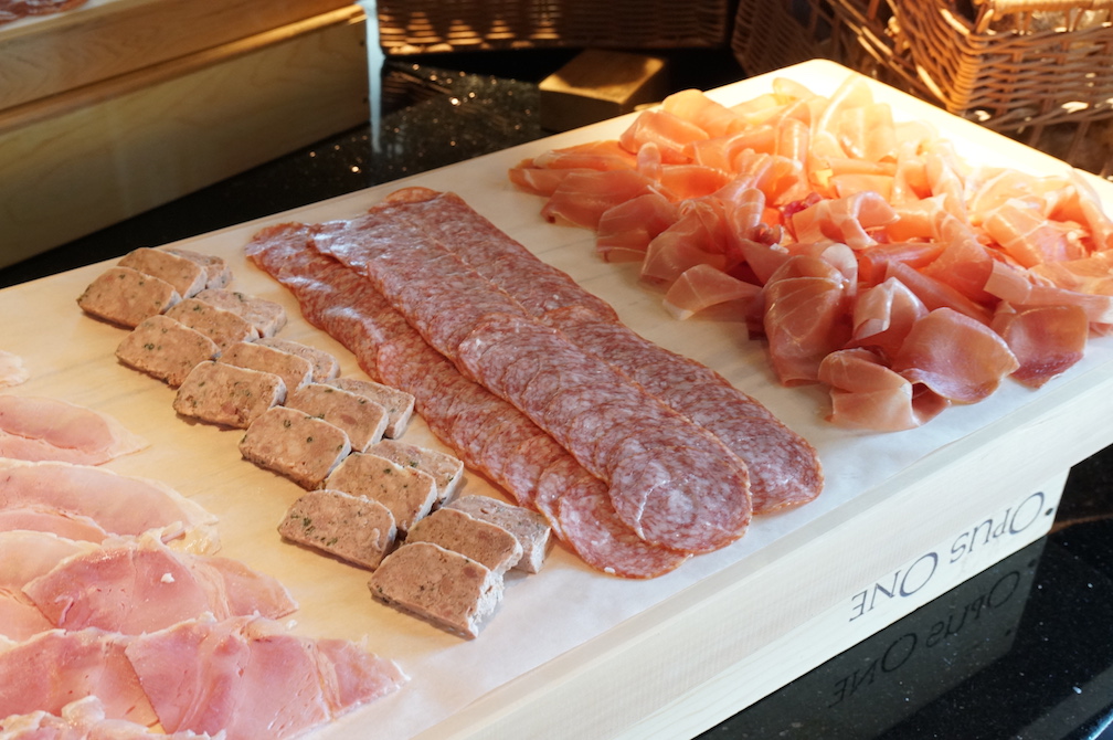 次に、チーズ5種、ハム類4種が揃うコーナーへ。これはぜひ、ワインと合わせたい!