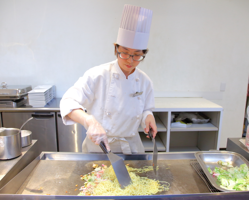ブッフェ台のワンコーナーには実演コーナーがあり、シェフが調理している様子を見ることができます。