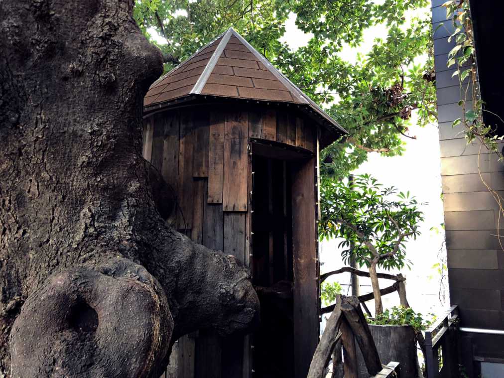 見上げると、なんとツリーハウスが!中へは店舗の2階から入ることもできるので、撮影スポットとしても大好評なんだとか。子どもに戻ったような気分でつい無邪気にはしゃぎたくなります!