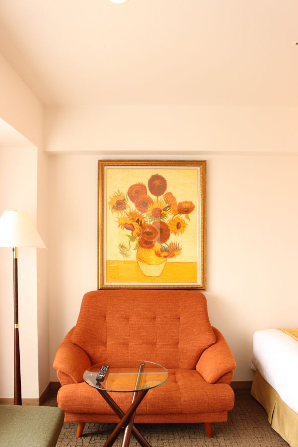 折角リゾートホテルに来たなら1泊したいところ。アオアヲ ナルト リゾートで人気のゲストルームが、大塚国際美術館とコラボした「ゴッホのヒマワリルーム」です。壁には実物とほとんど同じサイズの絵が飾られていて、名画をひとり占めできちゃいます。