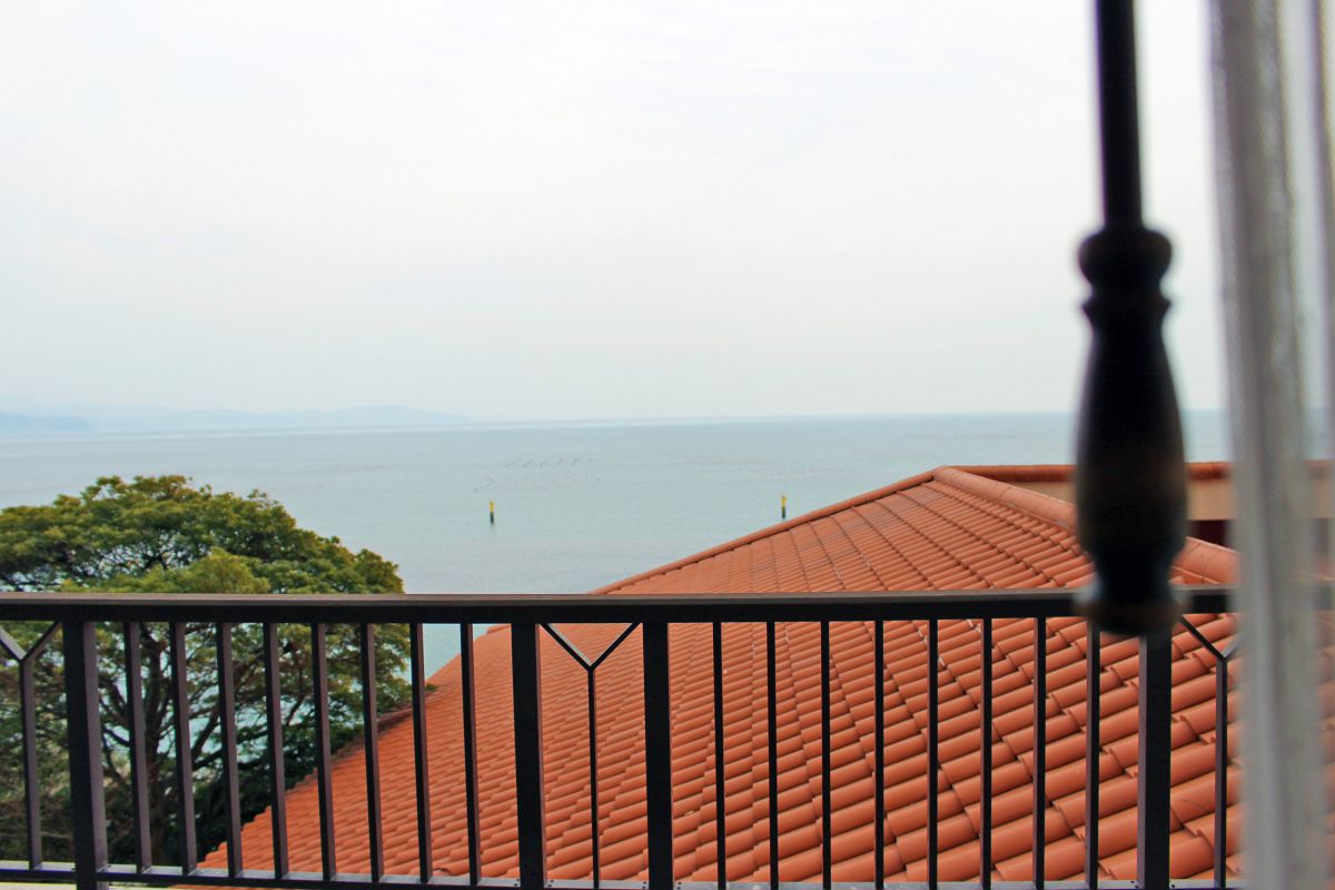 窓の外には、オレンジ色の屋根瓦と緑、そして海!ゴッホが過ごした南フランス アルルの町を思わせる風景が広がっています。