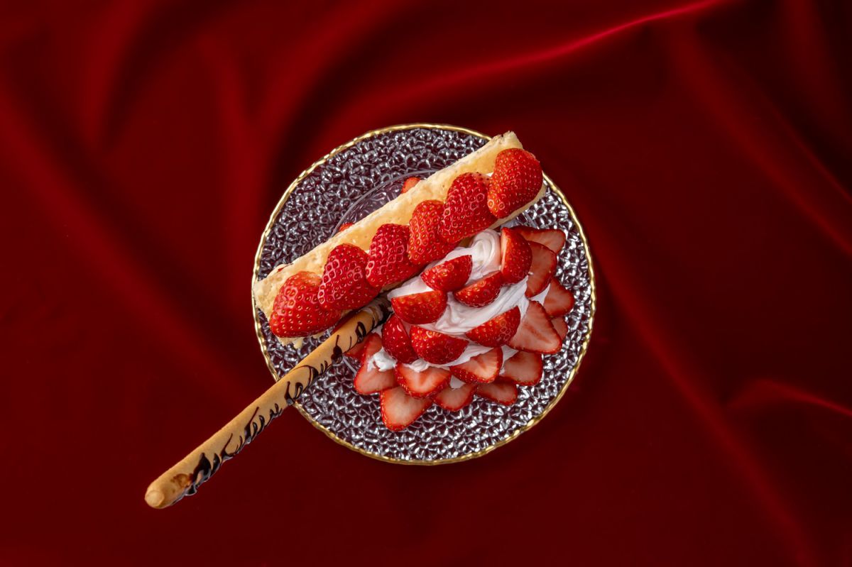 いちごを1パックまるまる使ったミルフィーユをのせた贅沢パフェが登場
