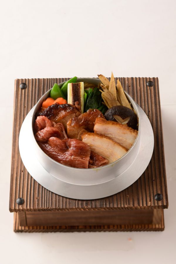三重県松阪市からは名物・松阪牛を使用した釜めしがお目見え。"肉の芸術"ともいわれる一級品の牛肉のすき焼きだけでなく、柔らかな肉質と脂肪分の少ないヘルシーさが女性にもうれしい松阪・錦爽どりの照り焼き、赤みにもサシが入り、良質でとろける脂肪が美味の松阪豚の角煮の3種のお肉を豪快にのせたスペシャル釜めしです。こんな豪華な釜めし見たことない!