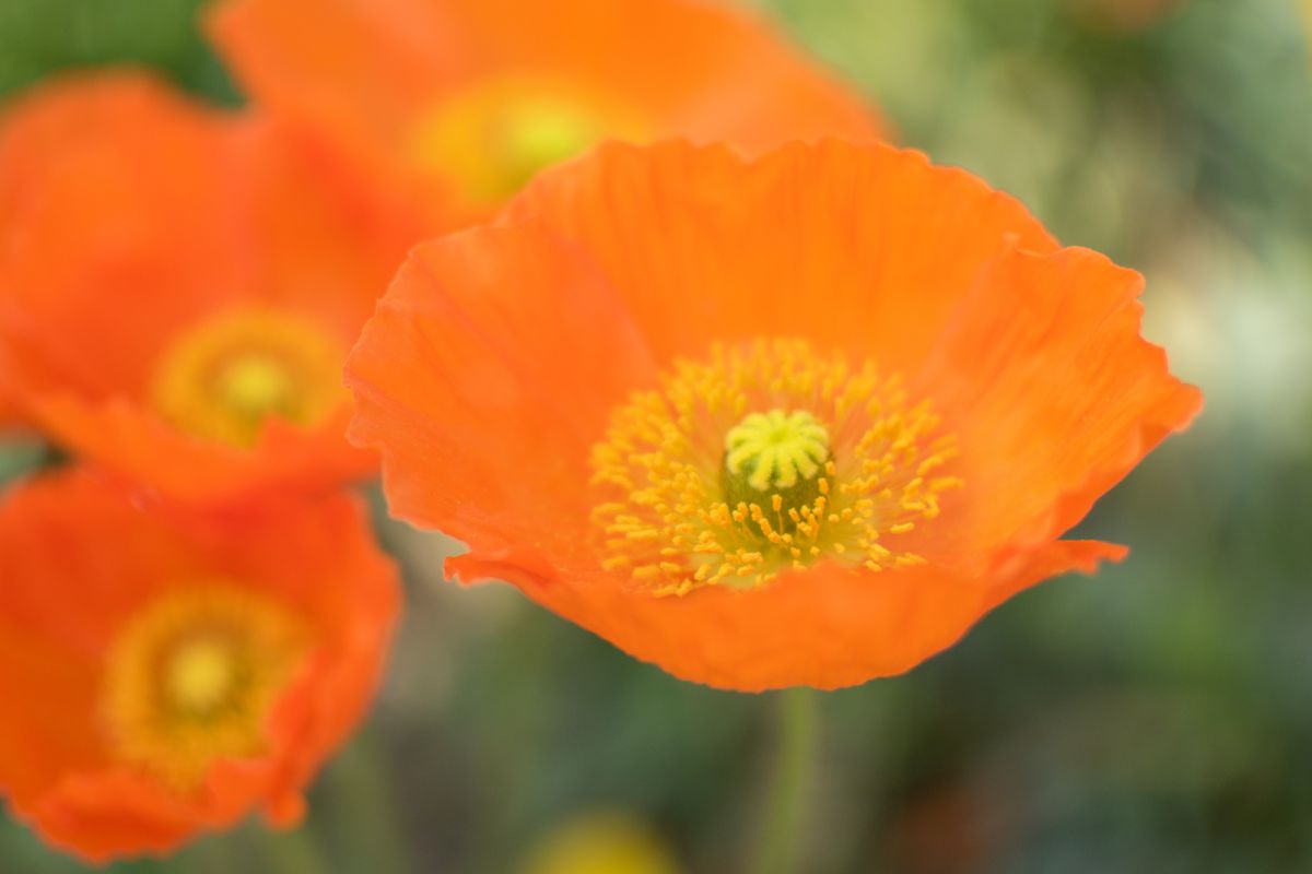 手前にある花にピントを合わせると後ろの花がぼけ、奥行きのある写真に。遠くにある花や、人にピントを合わせ、さらにレンズの手前にある花をファインダーの中に入れると、手前に広がりが出て柔らかい雰囲気を増すことができます。絞りの値を変えて、ボケのレベルの違いを楽しんでみてください。