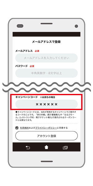 るるぶID会員登録時のキャンペーンコード入力方法