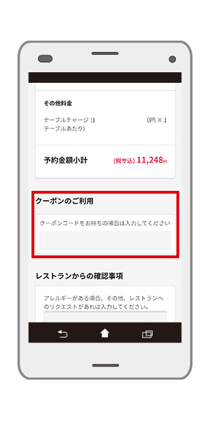 確定前にクーポン適用がされているか金額内容をご確認ください。