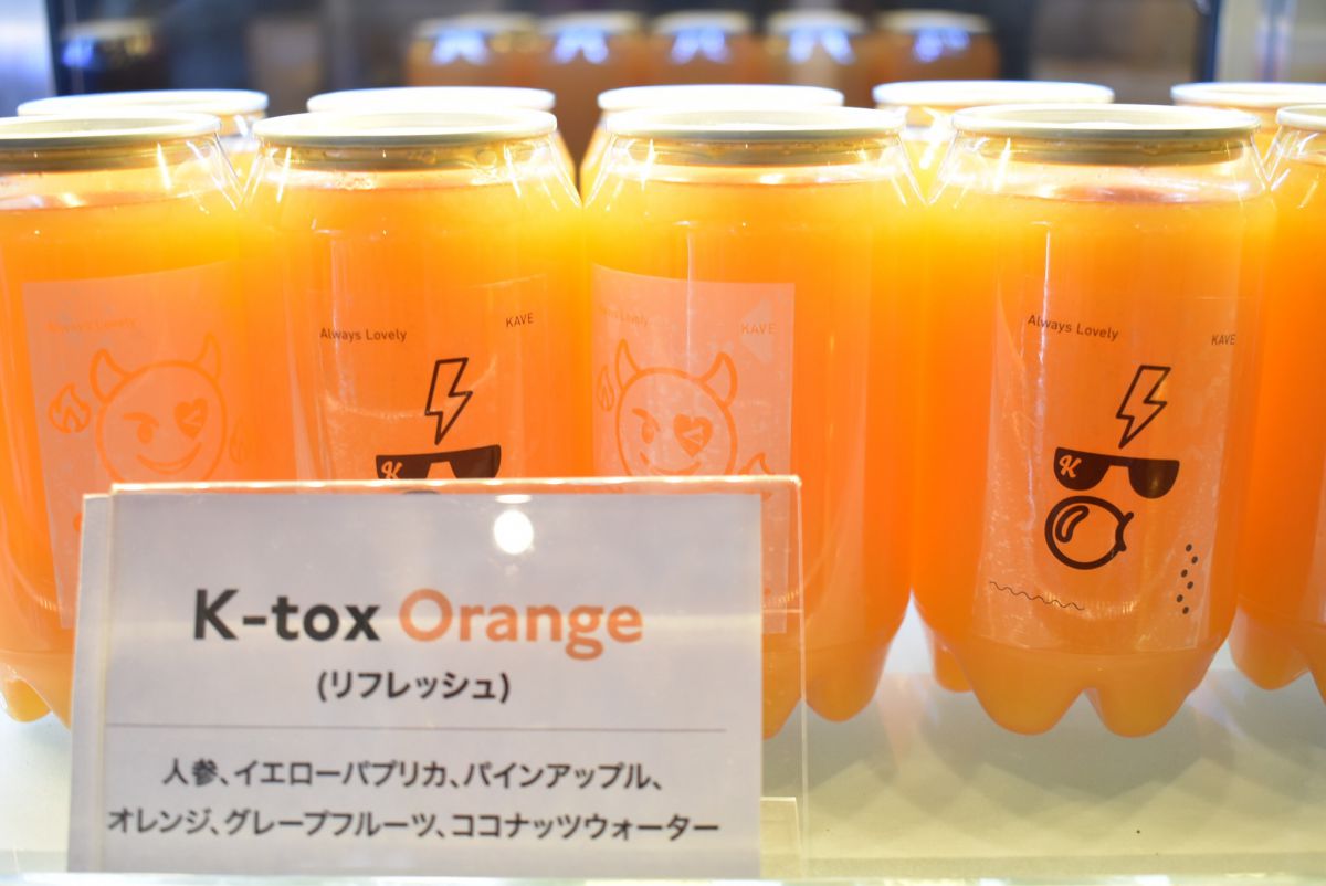 ドリンクメニューにはほかにも、健康を意識した「K-tox」というカラフルなドリンクを用意。デトックス目的なら「K-tox グリーン」、アンチエイジング目的なら「K-tox ベリー」、リフレッシュ目的なら「K-tox オレンジ」というように目的に合わせてチョイスできます。