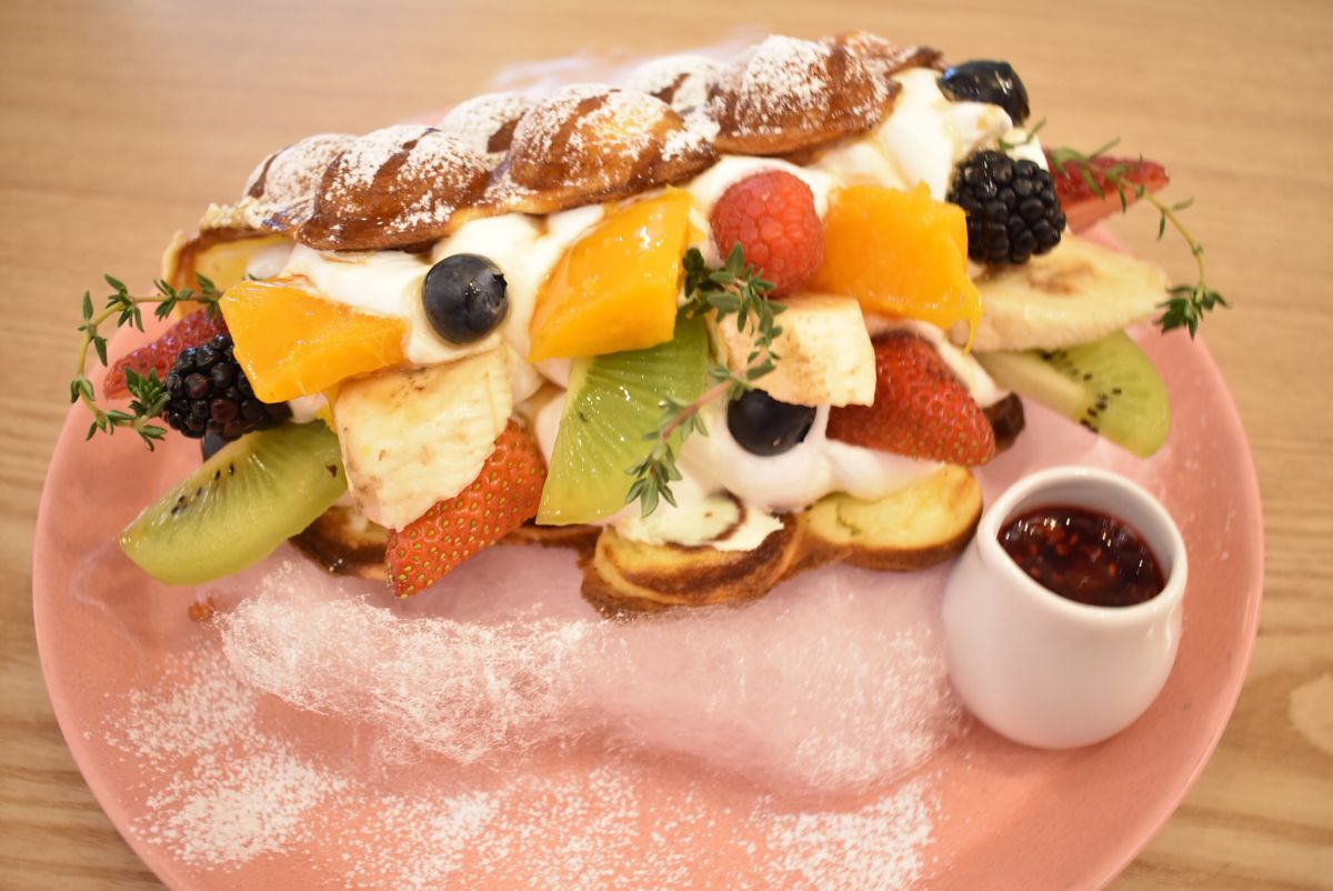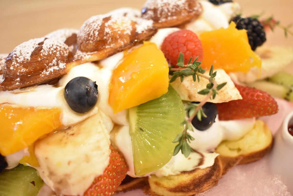 「プレミアムフルーツバブルワッフル」は、フルーツと生クリームがたっぷりとサンド。