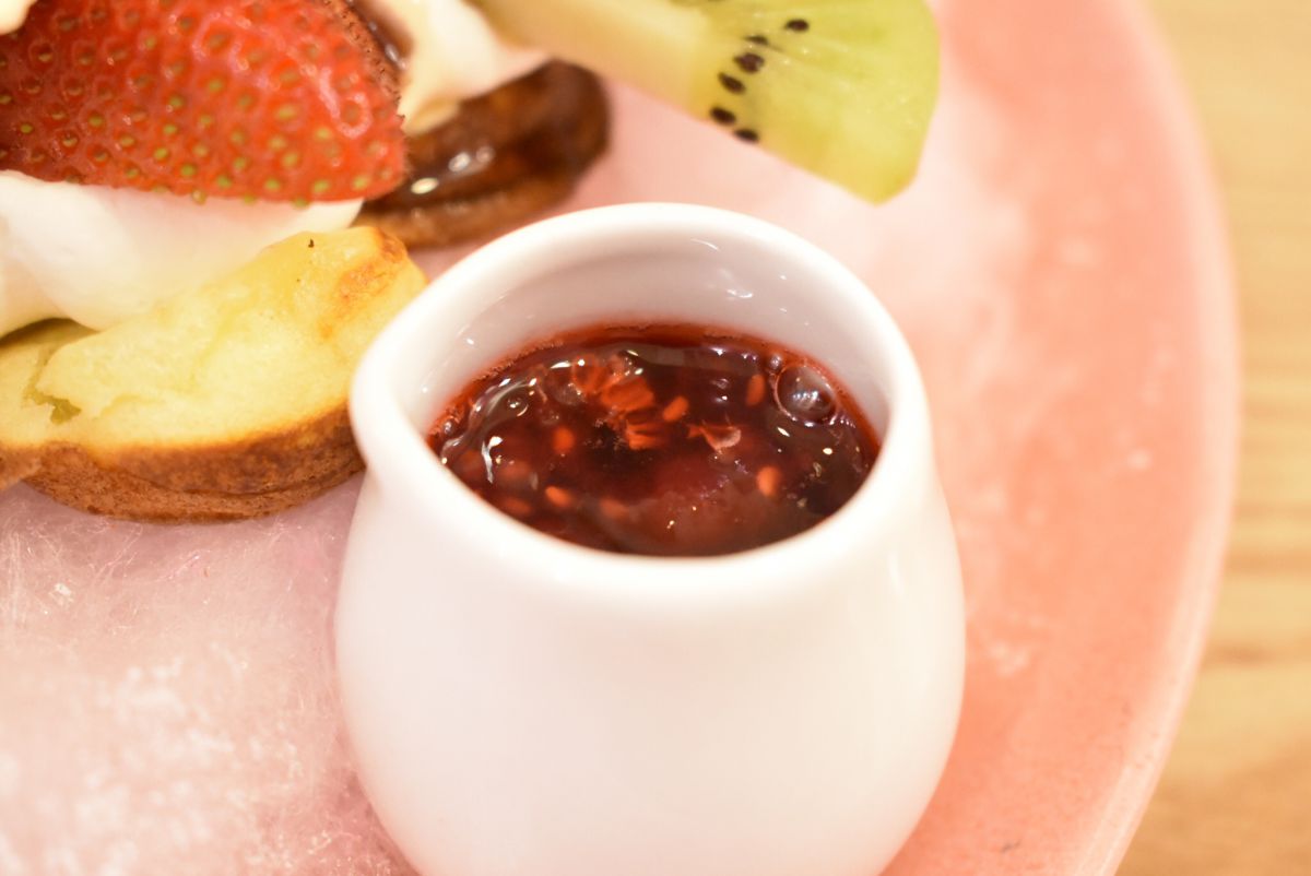 ベリーのソースをかけていただきます。