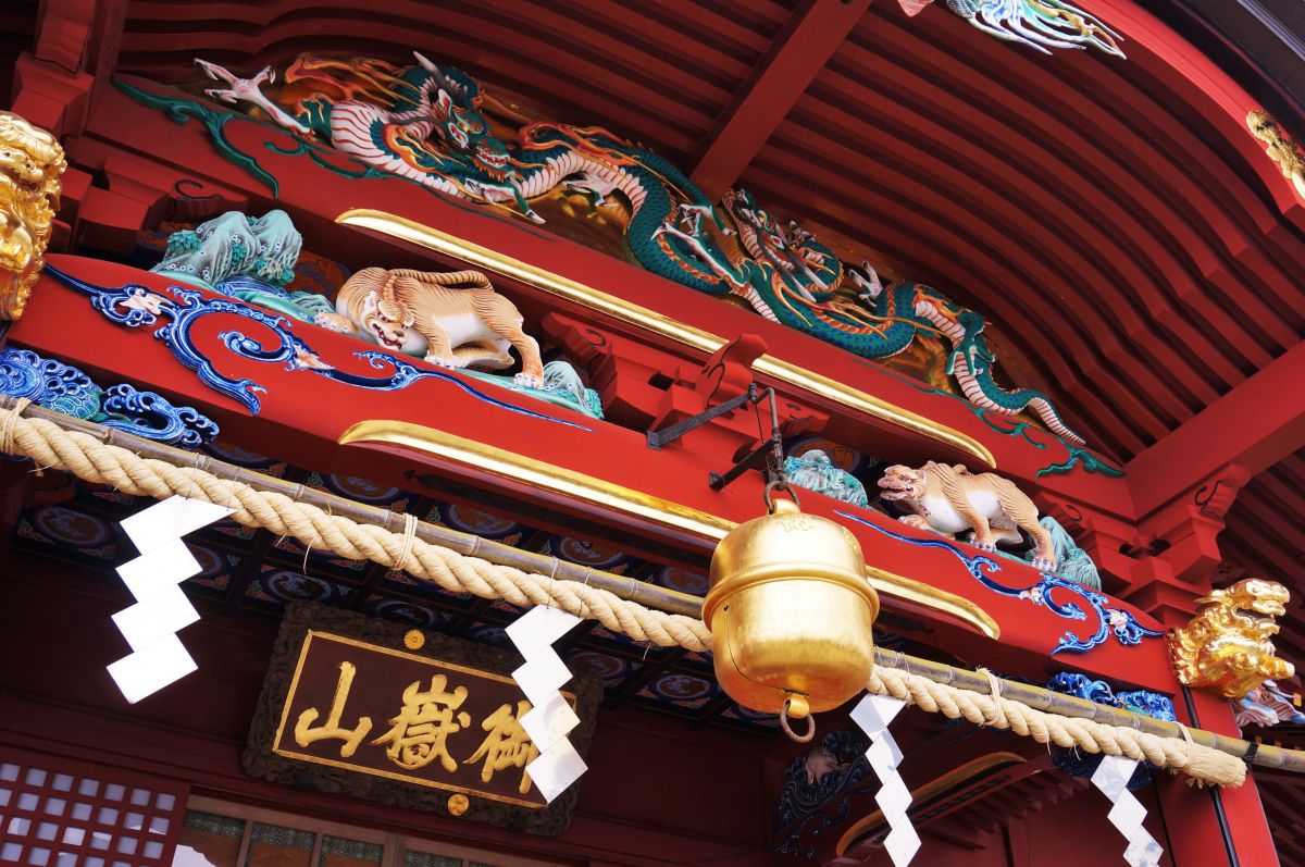 御岳山頂上に位置する「武蔵御岳神社」は関東一の霊山で、厄除や長寿等のご利益で知られています。全体的にカラフルな装飾が目を引きます。
