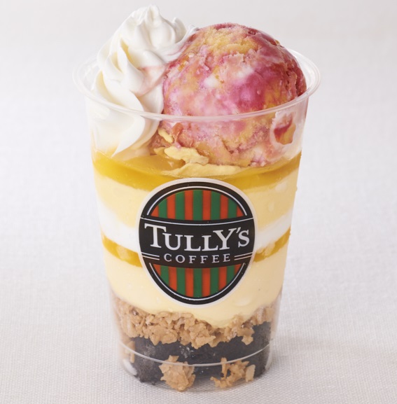 「T’s パフェバート スプリングブロッサム」590円は、“心躍るパフェ”をコンセプトとしたT’s パフェバートの限定フレーバー。カシス、オレンジ、ヨーグルトの3つの味わいが楽しめるエリア限定アイスをトッピングした春らしい味わいです。