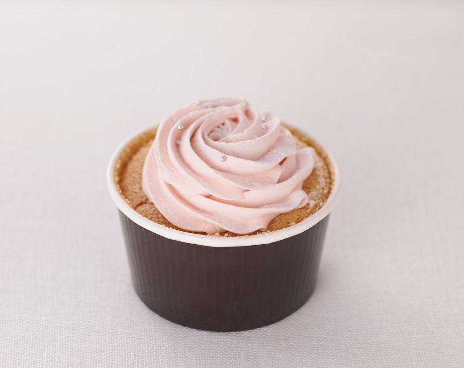 ほんのりジャスミンの風味を感じるシフォンケーキにピーチホイップを飾りつけた「フラワリーカップ ピーチ&ジャスミン」420円は、春色のかわいらしいカップケーキです。