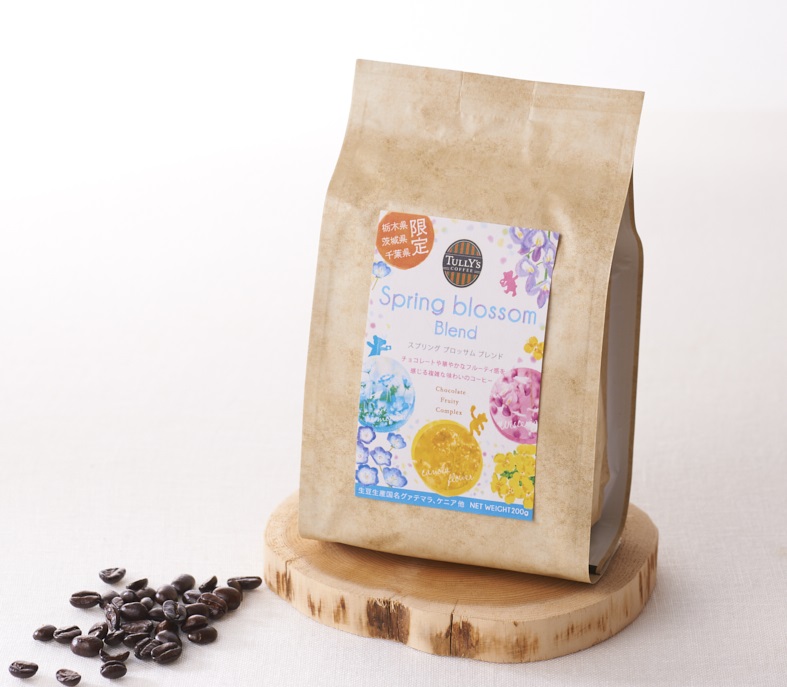 花を散りばめた色鮮やかなパッケージがすてきな「スプリングブロッサムブレンド」200g1200円は、チョコレートのようなコクと、フルーティーで華やかさをあわせもつバランスの取れた味わいです。