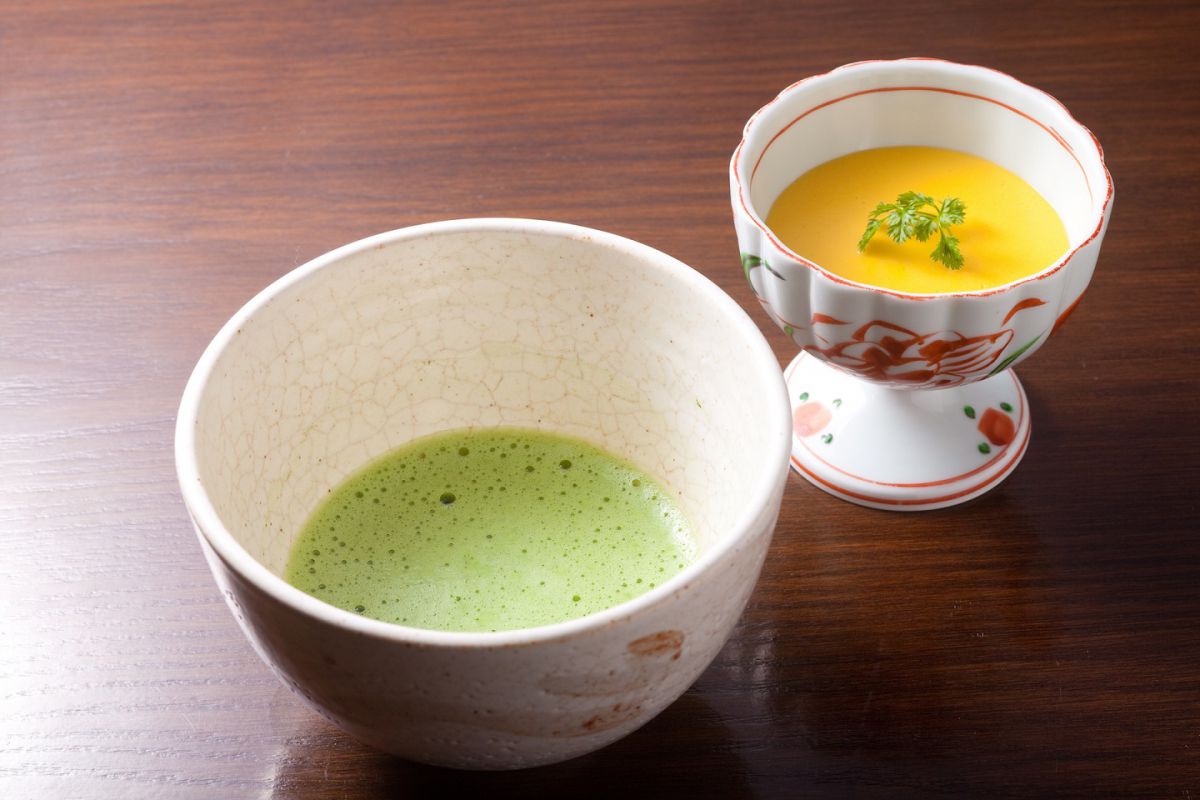 こちらの「お抹茶」は、コース料理にプラス300円でセットにすることができます。