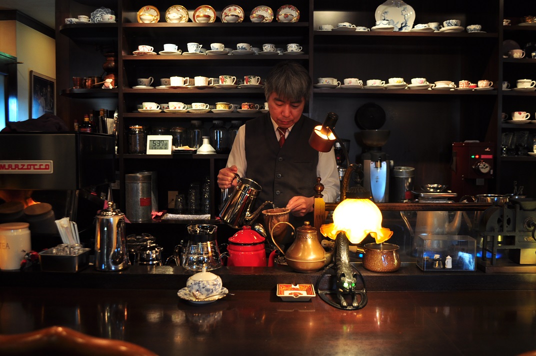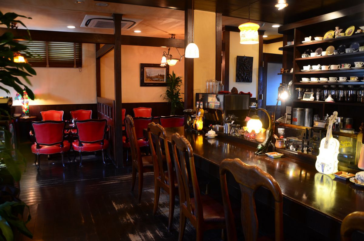 ズラリとコーヒーカップが並ぶカウンター、アンティークな調度品、レトロな内装、と昔ながらの喫茶店のような懐かしい雰囲気が魅力です。