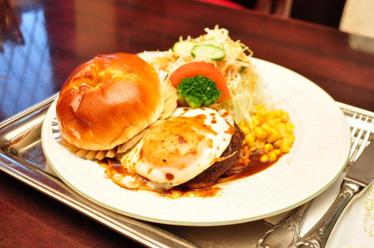 11〜14時のランチタイムは、写真のハンバーグ&目玉焼きプレート(1100円)、オムレツ&ソーセージプレート(1000円)の「パンランチ」を提供しています。それぞれ5種類から選べるコーヒー付き。