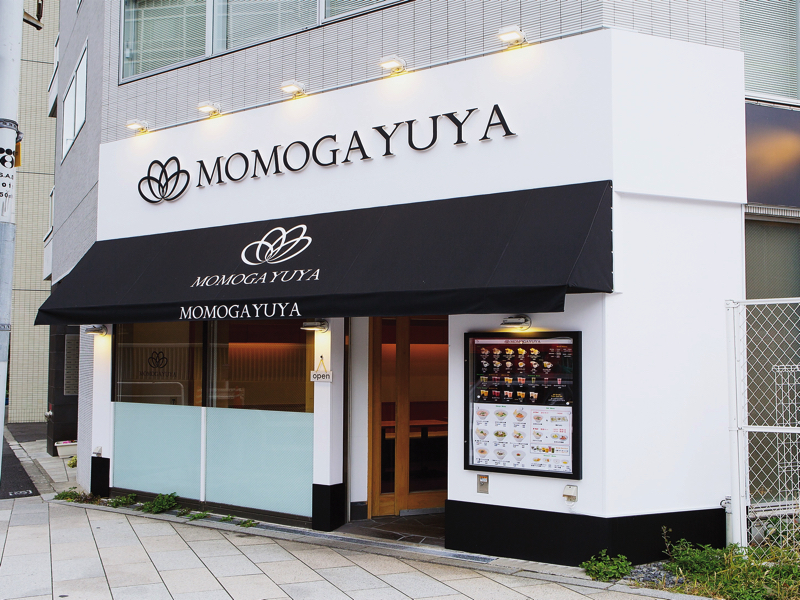 お粥のお店というと、なんとなく和テイストな佇まいのお店をイメージしませんか?ところが「MOMOGAYUYA」はモノトーンの清潔感あふれる外観で、まるでスイーツショップのよう!落ち着いた雰囲気の店内も、カフェ感覚で気軽にゆっくりとした時間を過ごせると好評だとか。
