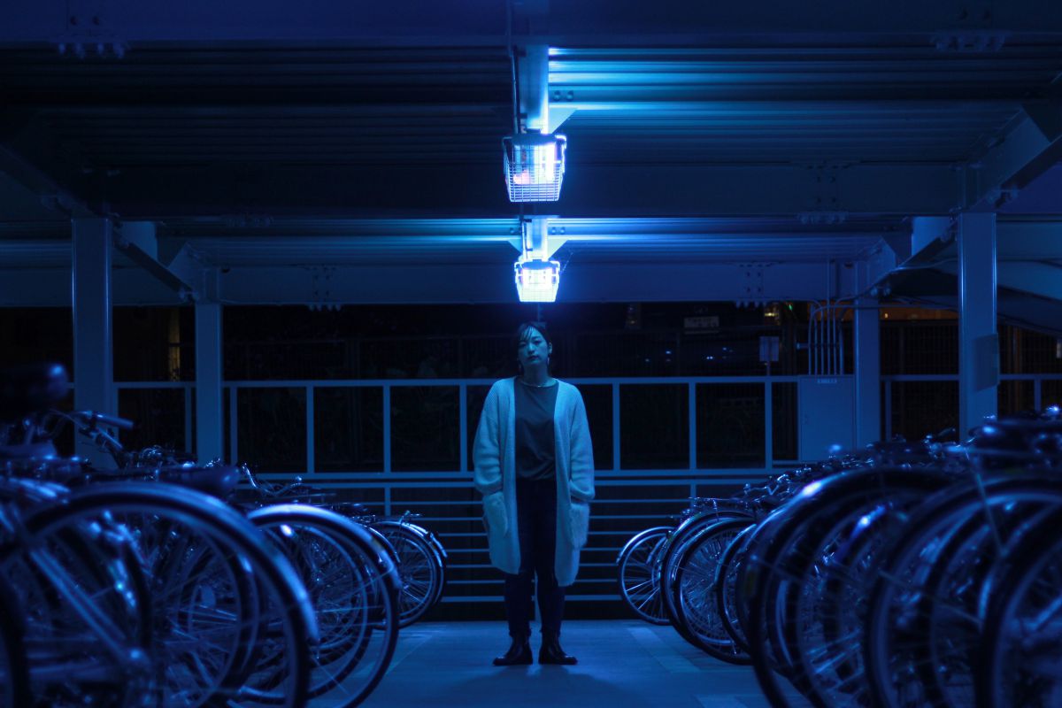こちらの写真をご覧ください。この写真は、ブルーのライトがかっこいい、どこにでもある自転車置き場で撮影したもの。よく見ると、シンメトリー(左右対称)になっています。