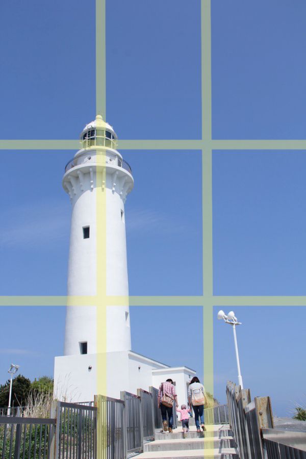 次にこちらの写真。澄み切った空と真っ白な灯台のコントラストが美しい写真ですが、こちらは“三分割構図”を意識したもの。