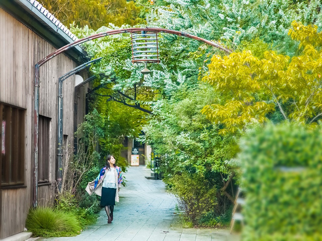 湘南に残る唯一の酒蔵「熊澤酒造」は、明治5年創業という老舗。日本酒やビールの製造工場がある茅ヶ崎市香川の本社敷地内に、古い酒蔵や古民家を利用したレストランやカフェ、ショップを展開しています。写真は緑に囲まれたエントランス。この奥にどんな空間が広がっているのか、気になる全貌をご紹介します。