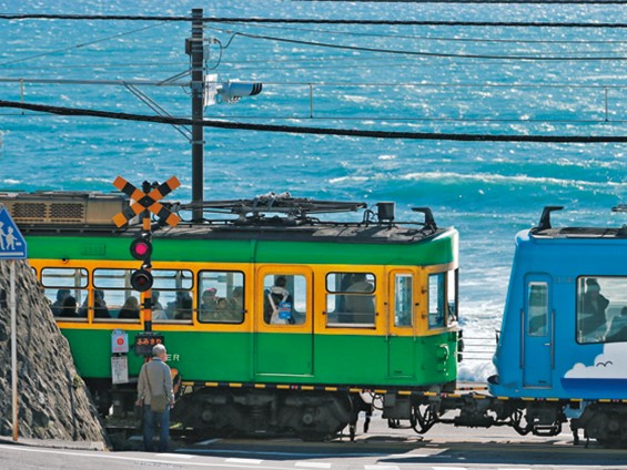 鎌倉から藤沢まで、古都の町並みやビーチサイド、住宅街など、線路沿いにさまざまな景色を楽しむことができる江ノ島電鉄(通称「江ノ電」)。各駅には、おしゃれなカフェやレストラン、ショップが点在しているほか、美しい海岸が広がっているので、途中下車をして立ち寄ってみましょう。駅の間はそれほど遠くないので、時には歩いたり、電車に乗ったり。江ノ電1日乗車券(「のりおりくん」大人600円)を利用するのが便利です。