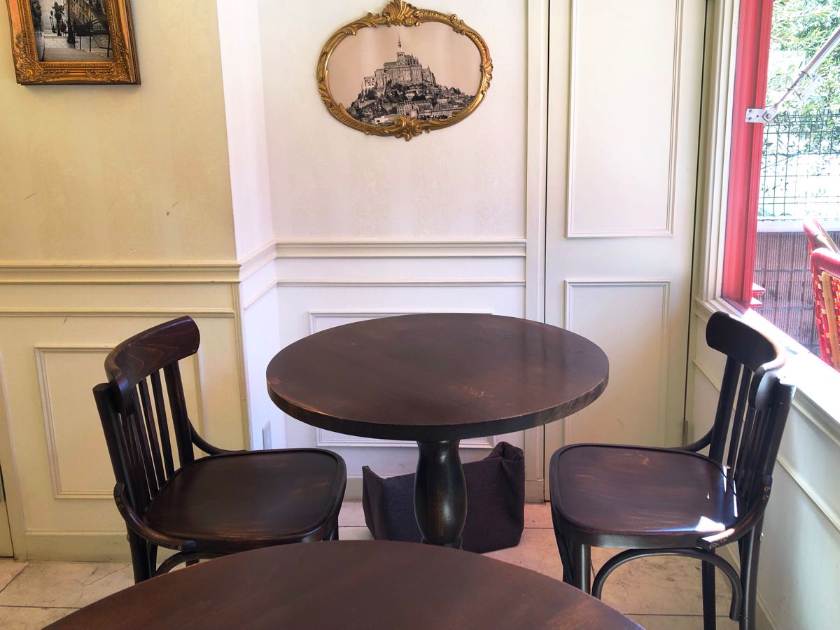 店先に小さなテラス席があり、まるでフランスのカフェのようです。