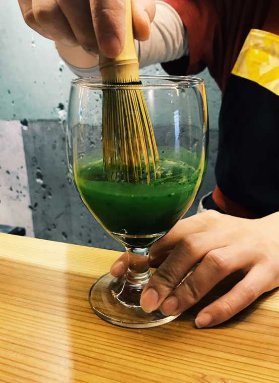 お茶割りにするにはめずらしいお茶が多く、迷ってしまいますが、最初にオーダーしたのは、抹茶×焼酎。こちらは、なんとオーダーが入ってから抹茶を点ててくれます。