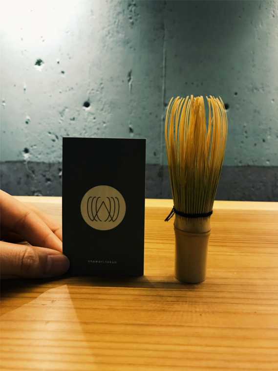 写真は、茶せんをイメージした「茶割」のロゴマーク。お茶への愛が伝わってくるお店です。