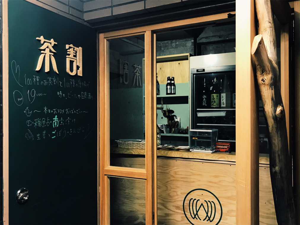 2016年にオープンした居酒屋「茶割」は、学芸大学から徒歩2分とアクセス抜群。店内は、お茶をイメージさせるグリーンとやさしいウッドを基調にしていて、カフェみたいにオシャレ。女性1人でも入りやすい雰囲気です。