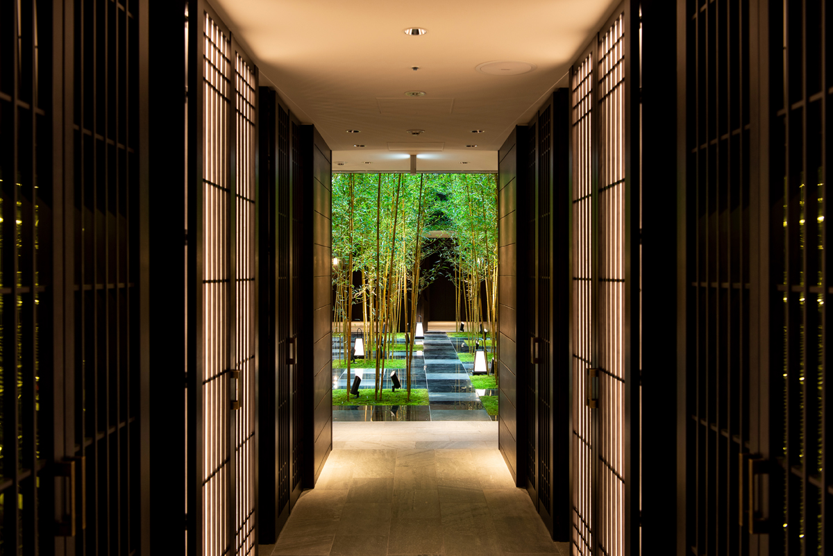 まずはエントランス。地下1階ガーデンの竹が、吹き抜けを越えてまっすぐに伸び、1階ロビーに青々とした葉をのぞかせているのが印象的。ガーデン上部はガラス張りの天窓となっているので、やさしい自然光が差し込みます。